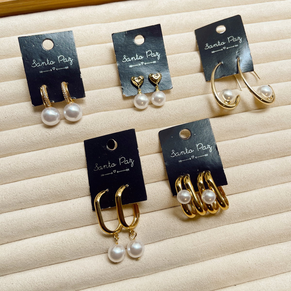 Aros de Acero Dorado - Perlas