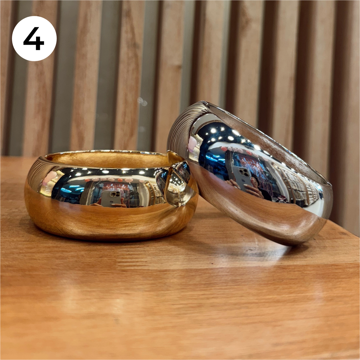 - Acabado Metálico de Lujo: Disponibles en un brillante y pulido Dorado Espejo y un deslumbrante Plateado Cromado, reflejando la luz con cada movimiento.