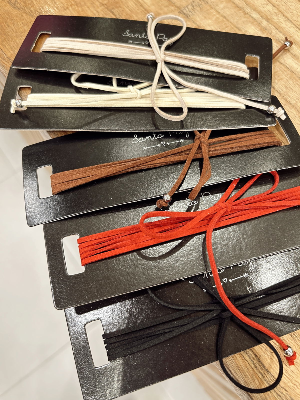 Diseño Ajustable: Incluye un cordón largo y fino que permite múltiples vueltas y ajustes mediante un nudo, o terminaciones metálicas (visibles en los tonos claros) que facilitan el cierre y añaden un detalle pulido.
