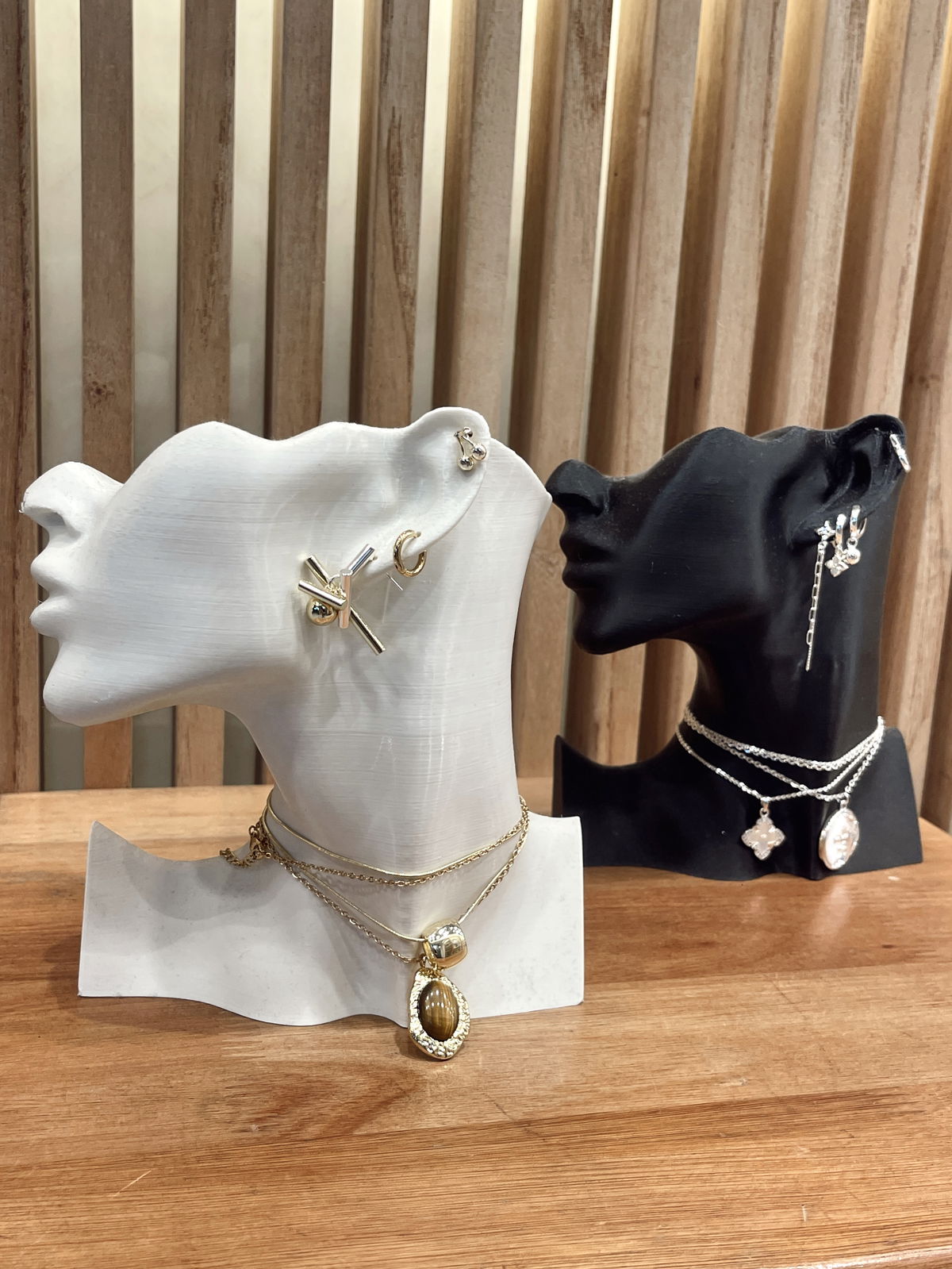 Su formato con silueta de rostro permite exhibir las piezas tal como se verían colocadas, podes usarlo para exhibir la mercaderia en tu negocio o para sacar fotos y compartirla en tu pagina web o redes sociales!