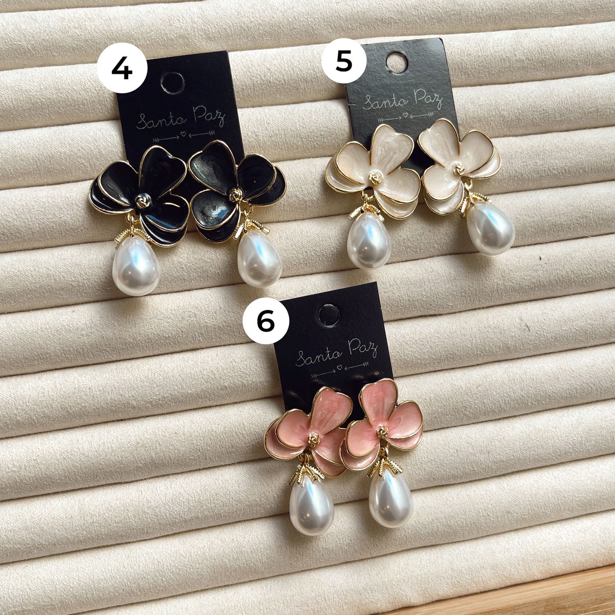 Aros de Acero Blanco y Dorado - Flor y Perla Colgante